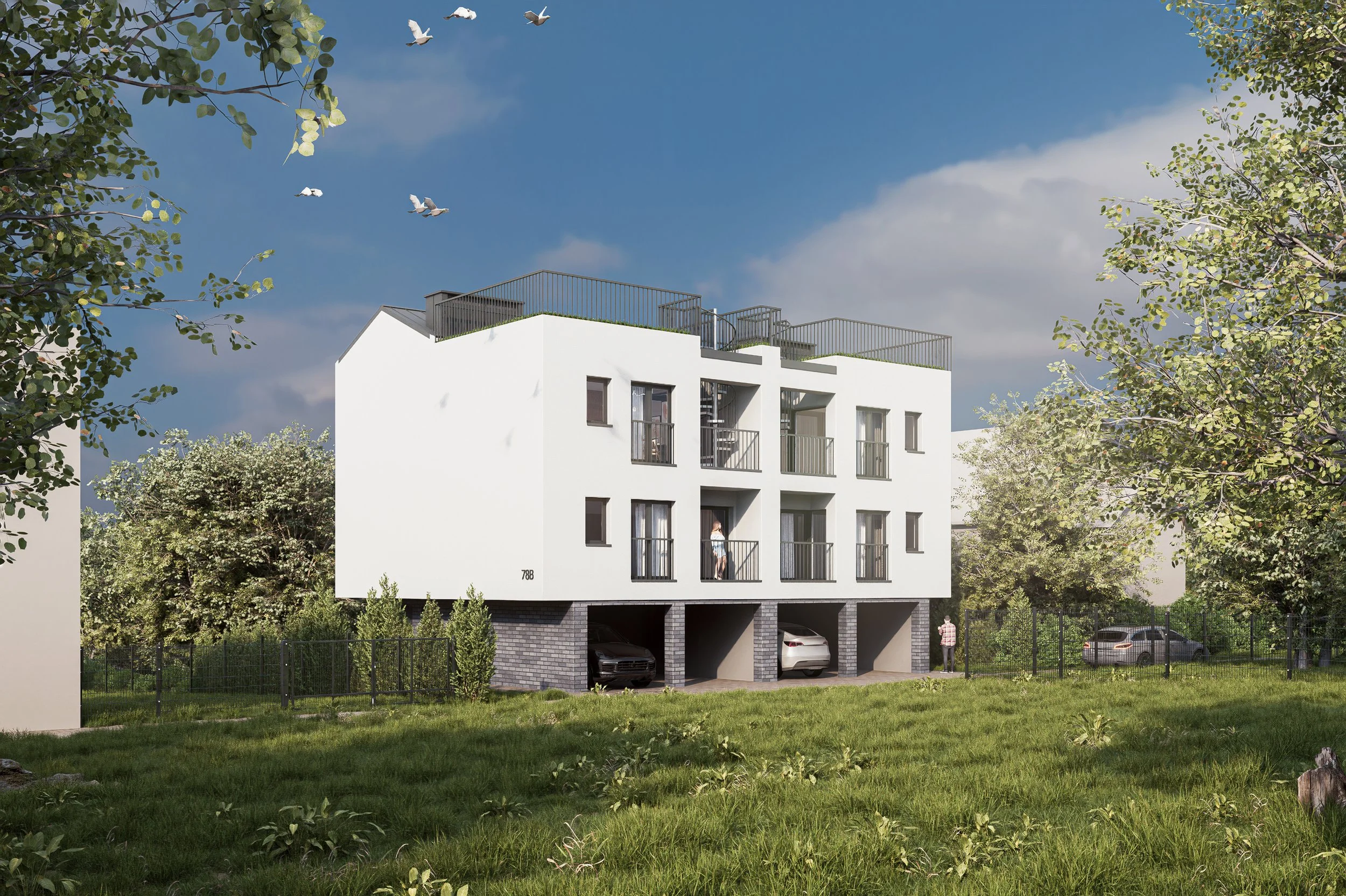 Kameralny obiekt jednorodzinny w zabudowie bliźniaczej, położony w spokojnej dzielnicy Wola Duchacka W każdym z trzypiętrowych budynków zaprojektowano po dwa trzypokojowe mieszkania posiadające własny kawałek przestrzeni na świeżym powietrzu, z lokalu na drugim piętrze dostępny duży zielony taras o powierzchni 35m2, w około budynków przydomowe ogródki.